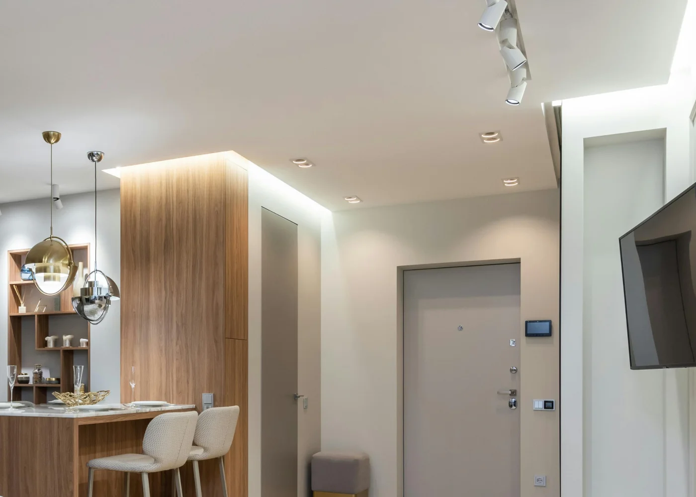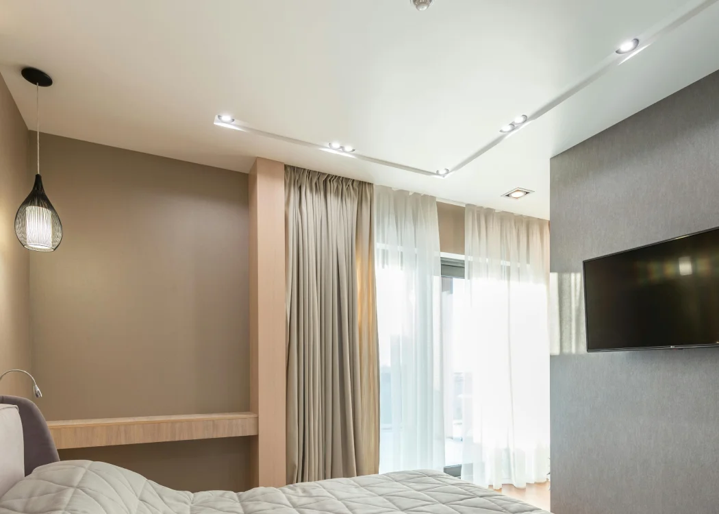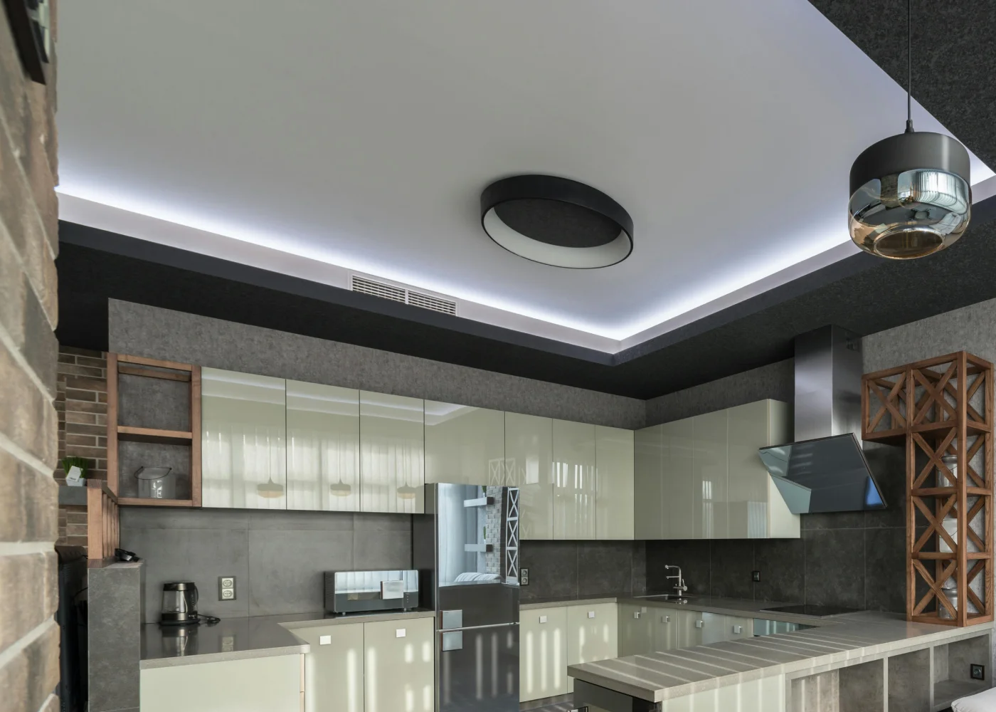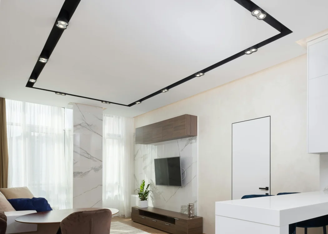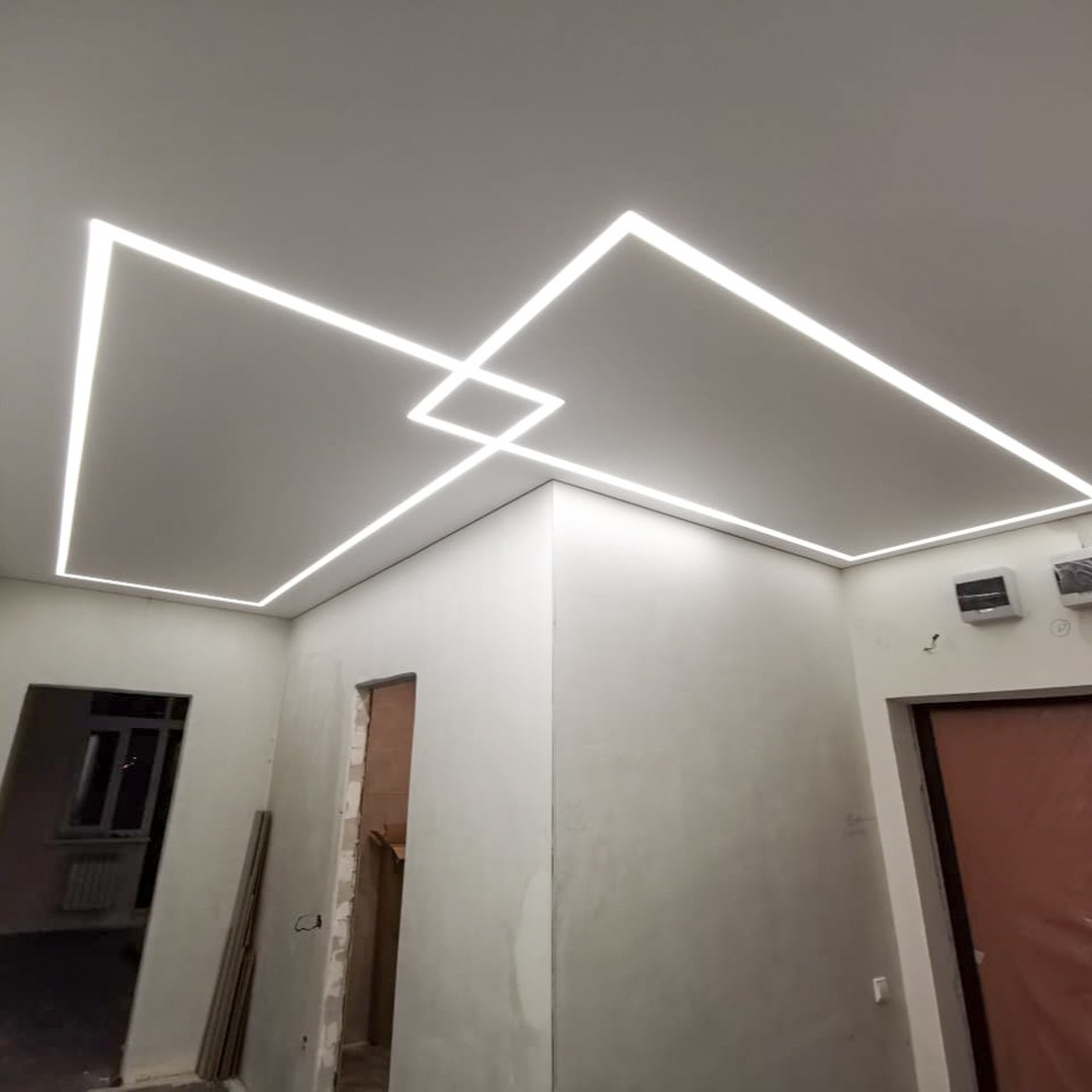 Световые линии преображают обычный потолок. Их главное достоинство — равномерно и ярко освещают комнату, придают ей стиль. Такое освещение приятнее человеческому глазу и позволяет не загромождать потолок люстрой.