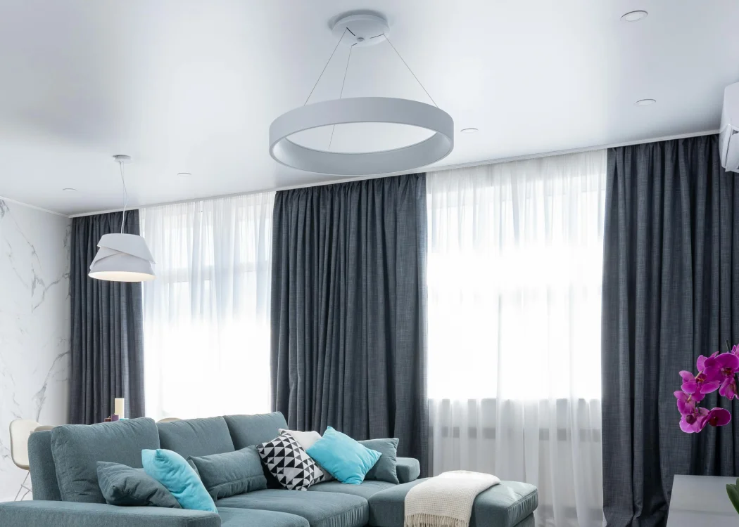 Мы используем поливинилхлорид (ПВХ) или тканевые материалы. ПВХ обладает высокой прочностью и водоотталкивающими свойствами, тогда как тканевые материалы могут придать потолку особый эстетический вид.