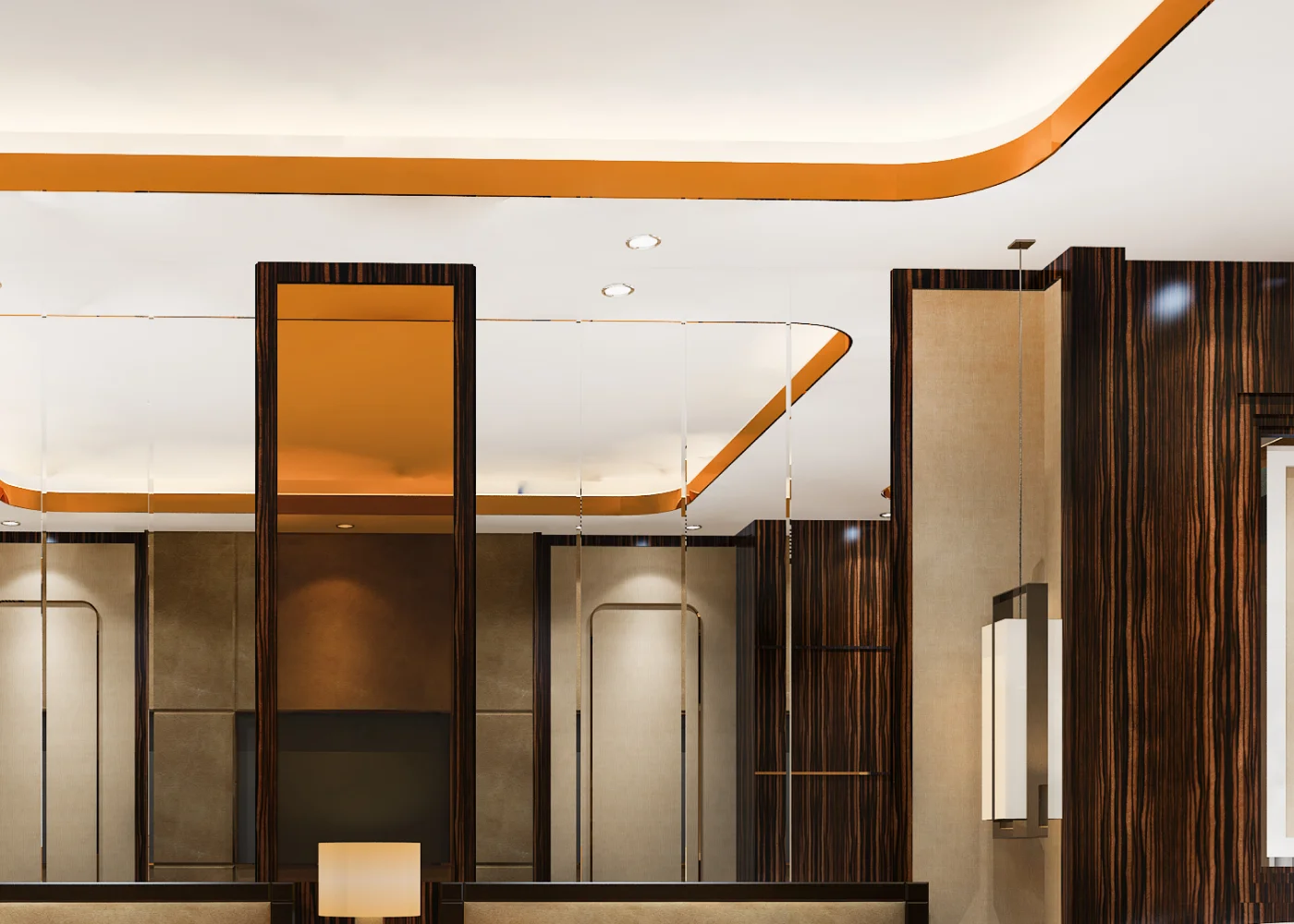 Благодаря оптическому эффекту создается ощущение, что конструкция легко висит в воздухе и не закреплена